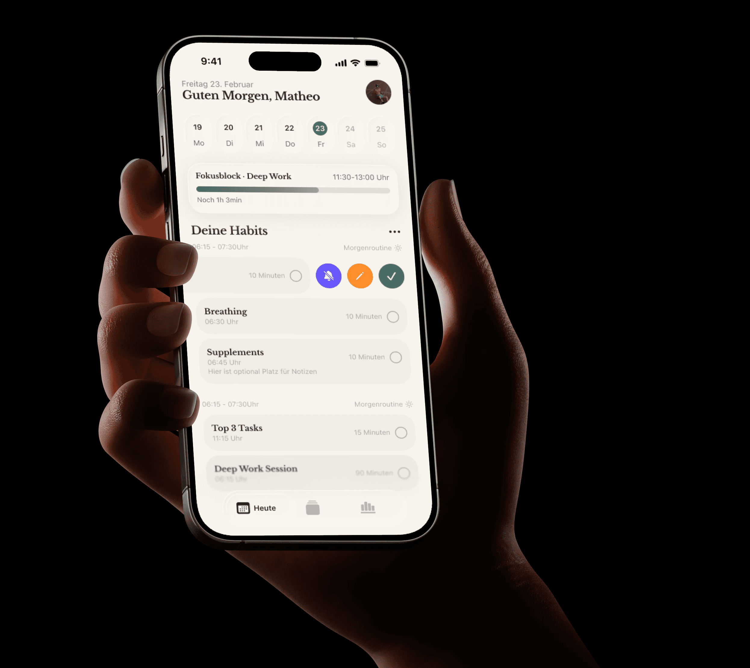 Mein aktuelles Projekt und meine Lernumgebung. Mit "ANOTHER HABIT TRACKER" durchlaufe ich den gesamten Build-Prozess an einem echten Produkt: Design, Code, Backend, Daten und AI-Integration.